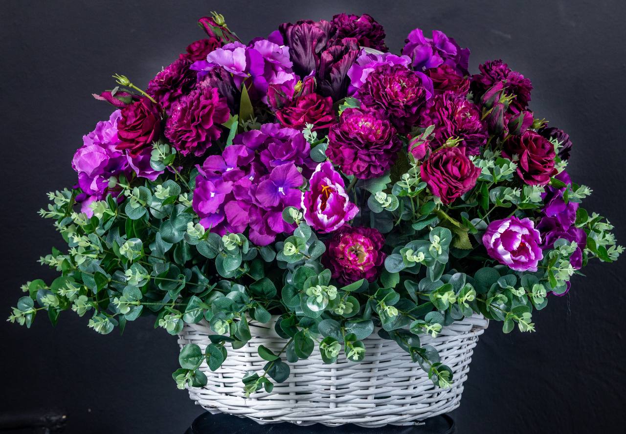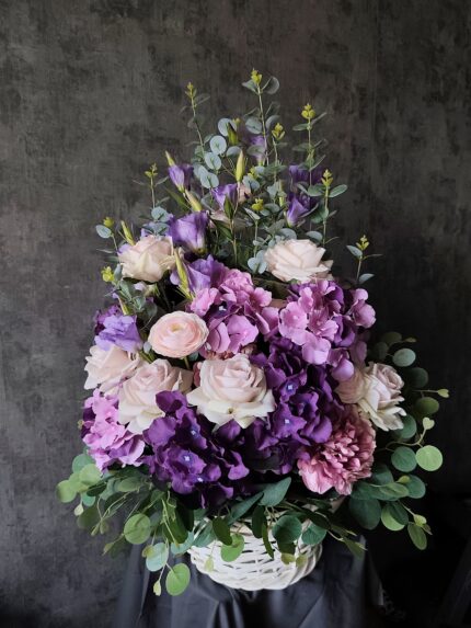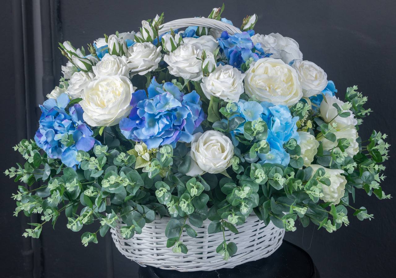 Состав: гортензия, розы, эвкалипт, тюльпаны.